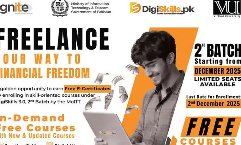 The Ministry of IT & Telecom, in collaboration with the Virtual University of Pakistan and Ignite open Digiskills registration 2025 for the Digiskills 3.0, 2nd Batch by MOITT. The last date for enrollment is 2nd December 2025. The launch of DigiSkills registration 2025 for the 2nd Batch is an excellent opportunity for anyone who wants to learn high-value skills and build a successful online career.