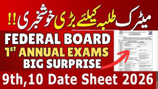 Federal Board Has Announced FBISE Matric Date Sheet 2026