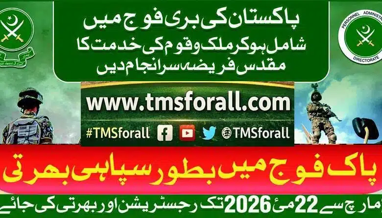 Jobs in Pakistan Army as Soldier 2026, Soldier Driver, Soldier Nursing Assistant, Soldier Military Police, Clerk, Cook and Driver have been advertised today for the year 2026. It is exciting news for those who are waiting for jobs in Pakistan Army as soldiers. This latest and fresh advertisement is published today in the “Express” Newspaper (Islamabad). If you are a young, motivated, passionate, and patriotic Pakistani citizen, these jobs are for you. Registration will start from March 2, 2026, and continue till May 22, 2026