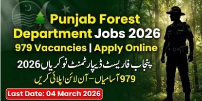 Applications will be submitted online through Punjab Jobs Portal https://jobs.punjab.gov.pk/ by March 4, 2026 Candidates looking for forest jobs in 2026 should carefully review the eligibility criteria, age limits, physical standards, and division-wise distribution before applying.