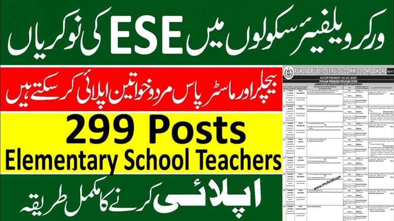 Punjab Worker Welfare School Jobs 2025- 299 Posts of ESE Teaching Jobs